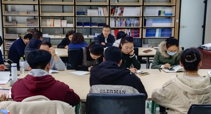 资料室,为我院全体师生党员宣讲党的十九届六中全会精神。宣讲会由党支部书记、院长张嵩主持。
