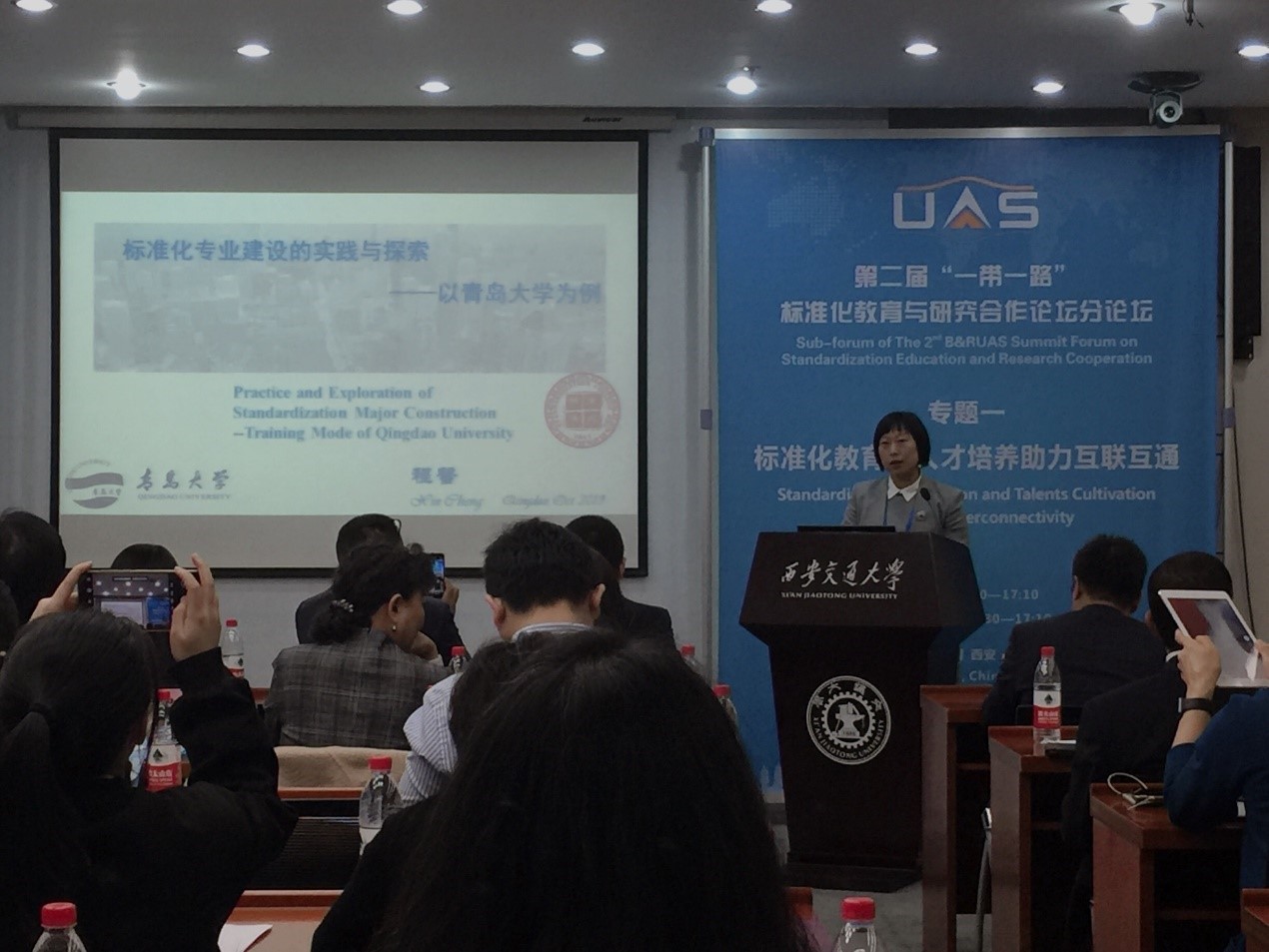 程馨副院长在论坛上作了题为“标准化专业建设的实践与探索”的报告,详细介绍了我国标准化教育的现状、青岛大学“标准化+”人才培养模式以及未来标准化人才培养的方向,为标准化人才的培养提供了新的思路,在论坛上引起强烈反响。
