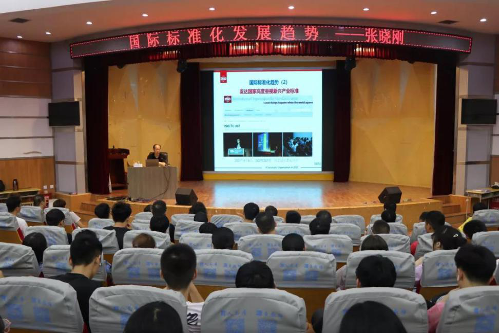 张晓刚主席首先简要介绍了标准化的起源和发展,并就国际上公认的三大标准化组织ISO、IEC和ITU做了讲解,使刚入校的2019级新生对于标准化有了初步的了解,也让其他同学对于国际标准化活动有了更深的理解。