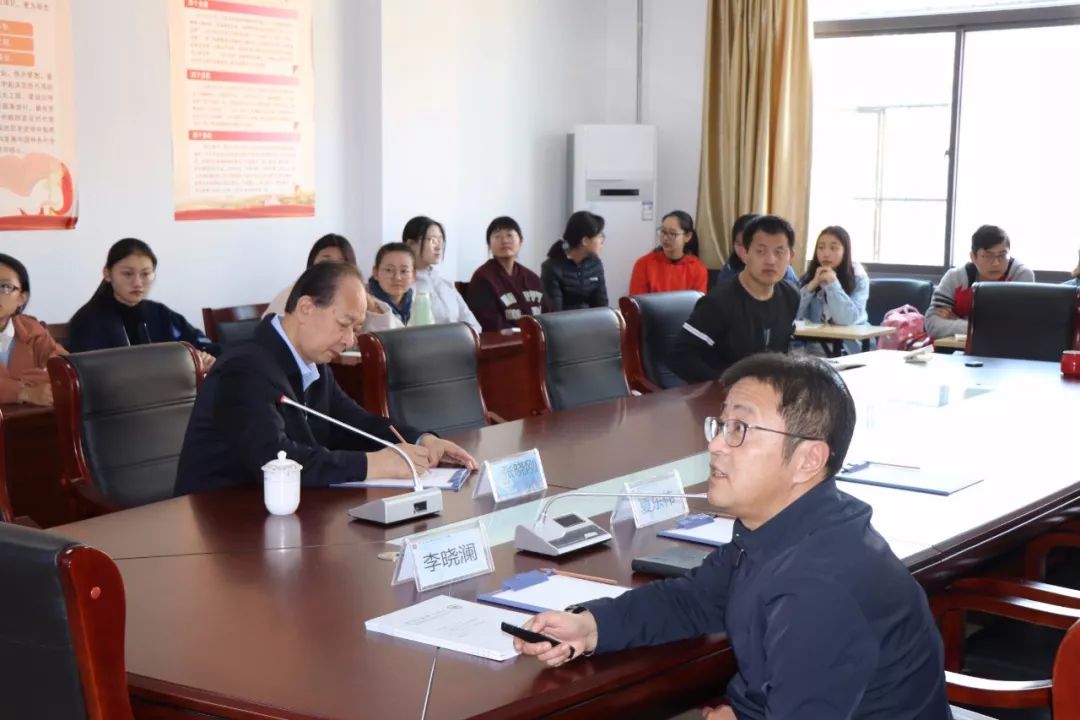 ,与学校领导及全院师生座谈交流。青岛大学夏东伟校长、校长办公室姜卫东主任出席座谈会。