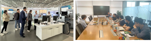 5月25日上午,张嵩院长带队到海克斯康(青岛)智慧产业园进行交流学习,海克斯康制造智能教育生态事业部运营副总监陈发波接待了我院师生一行并全程陪同调研和交流。调研过程中,首先在讲解员的引导下,师生了解了企业的发展史并参观了产品展示大厅,全面了解海克斯康“智能制造”和“智慧城市”等相关产品和技术解决方案。同学们对以球形激光测量仪、三坐标仪等为代表的各类型先进计量感知设备和统计分析系统赋能各种零部件或白车身的高精度三维建模和质量管控,高效助力制造业质量管理数字化转型的技术解决方案表示震撼,真实地体验和理解了计量、标准、质量和数字化如何与制造业深度融合应用。此外,先进计量技术在生物医学、城市管理等的应用场景也给同学们留下深刻印象。参观结束后,我院师生与陈发波副总监在会议室进行了研讨。陈总监先给大家介绍了公司近几年在精准测量和质量管理数字化方面的具体规划,同学们分别介绍了自己目前的工作情况并就关心的质量管理体系审核、测量系统分析、质量数据统计分析工具、精准测量等方面的问题与陈总监进行了深入交流。