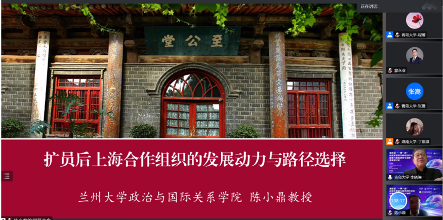 陈小鼎教授报告题目“扩员后上海合作组织的发展动力与路径选择”是一个极具研究价值和现实意义的重大命题。陈教授从扩员后上合组织的影响、动力、路径三个方面简洁、清晰、生动地勾勒出对这个命题的解答,给出了他本人对此问题的深度思考和建议,使我们很直观地了解到上合组织的“上海精神”及其包容性、聚焦性和制度性。