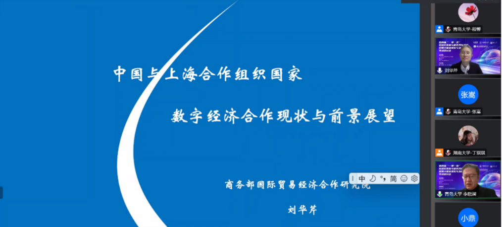 刘华芹所长从“合作现状”、“存在问题”和“前景展望”三方面系统阐释了中国与上合组织国家数字经济合作的现实情况,并针对数字电商、智能制造等8个领域分析了中国与上合组织国家经贸合作的潜力空间,在中国与上合组织国家经贸合作存在的问题方面,刘所长强调了“标准”的重要性,为未来进一步发展中国与上合组织国家间高质量合作提供了非常有价值的视角。