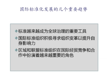同时,郑教授结合时事案例,分析出了国际标准化的三大趋势:其一,标准在全球治理中越来越重要;其二,国际标准组织力求变革提升;其三,区域和联盟标准组织角色越来越重要。