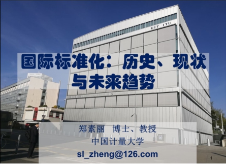 首先,郑教授回顾了国际标准化的产生与发展,明确了国际标准化的定义,介绍了具有创举性意义的国际材料试验协会的成立。而后依次介绍了国际电信联盟(ITU)、国际电工委员会(IEC)、国际标准化组织(ISO)的先后成立。
