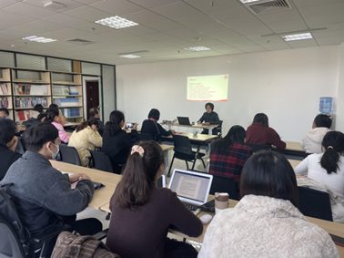 会议室作党的二十大精神宣讲报告,全体教职工、学生党员代表参加。