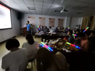 皎洁的月光撒在院门口的石街上,各色各味的月饼零食铺满了晚会的桌子,帅气的学长学弟,甜甜的学姐学妹全都落座。晚会有了零食,有了观众,怎么能少了节目呢!听,忧郁派的学弟唱起了《生而为人》;瞧,身穿汉服的学姐的舞蹈动人心弦唯美矜柔;看,一起游戏的大家言笑晏晏……好不快活!