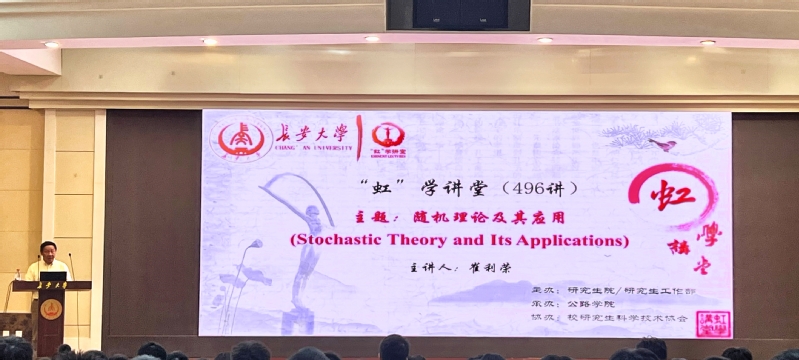2023年10月24日下午,我院崔利荣教授受长安大学“虹”学讲堂的邀请,做了题为“随机理论及其应用(Stochastic Theory and Its Applications)”的报告。本次报告会由长安大学研究生院/研究生工作部主办,公路九游官网