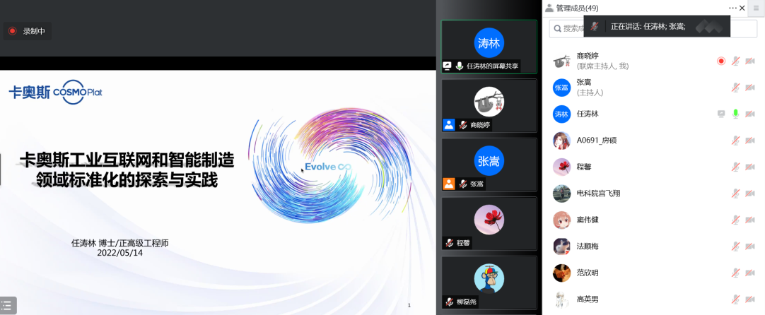 5月14日下午,任涛林博士在腾讯会议为我院全院师生做了题为《卡奥斯工业互联网和智能制造领域标准化的探索与实践》的学术报告。