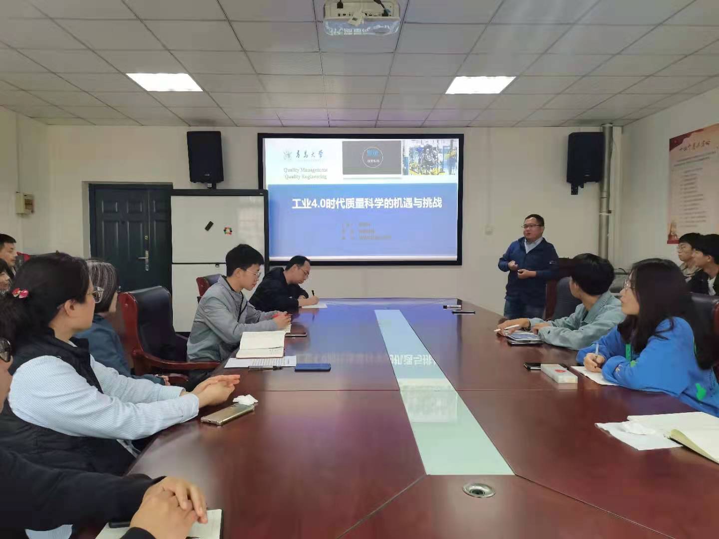 在会议室举办“标准化+”学术大讲堂活动,由我院特聘教授殷宪辉做了题为《工业4.0时代质量科学的机遇与挑战》的报告。本次大讲堂由张嵩院长主持,全体教师,20级、19级学生聆听了报告。