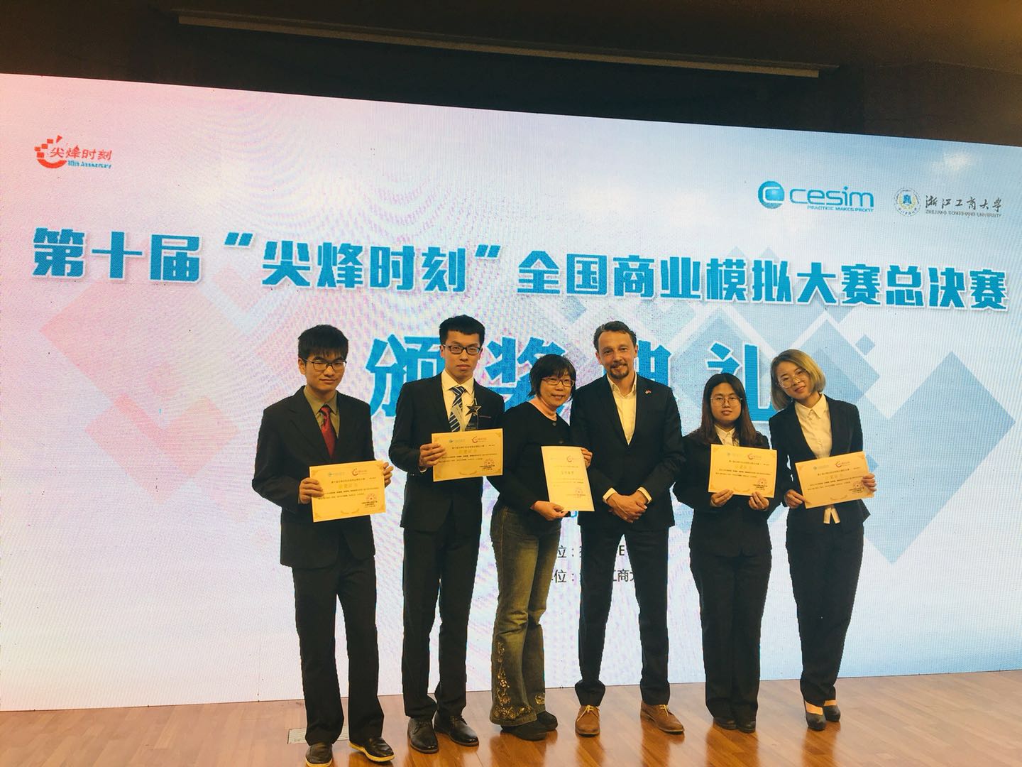 3 月 23 日,由 “ 尖烽时刻 ” 中国区组委会主办,浙江工商大学承办的第十届 “ 尖烽时刻 ” 全国商业模拟大赛总决赛在杭州拉开帷幕。