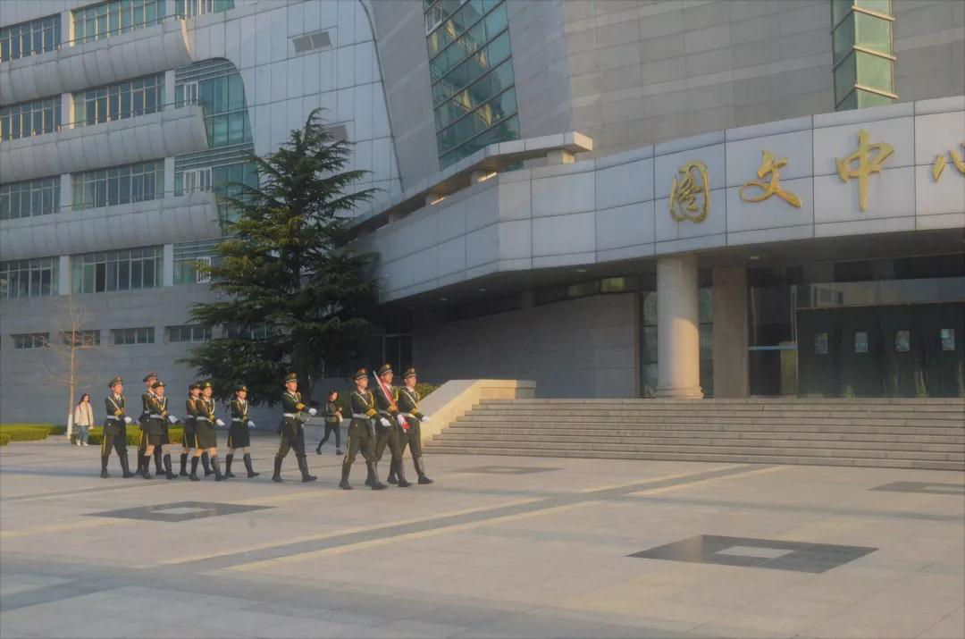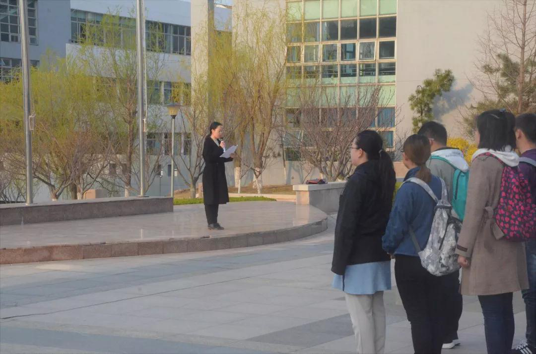 早春的风吹醒学子的梦,四月一日的清晨,我们准时集合在图文中心的国旗下,以崇高的敬意开启新一周的征程。