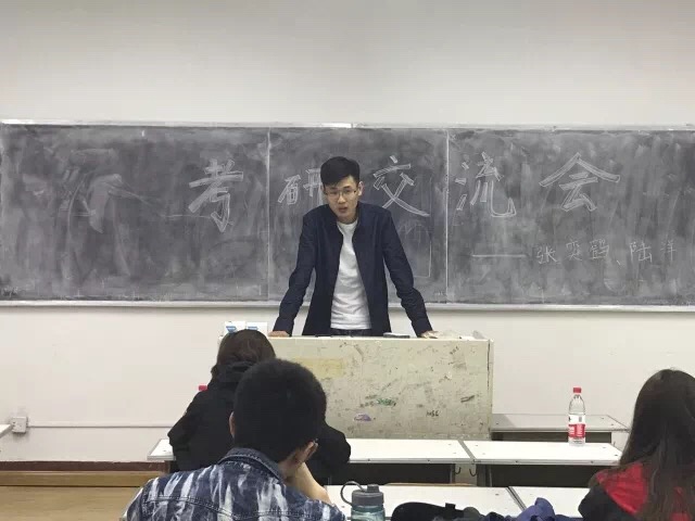 陆洋同学从时间安排和书籍选择两个方面进行了交流,为同学们提供了相关的复习书籍,并根据自己的经历为大家提出了复习的时间建议。在交流中他特别提出,学习英语要贯穿始终,不能间断。