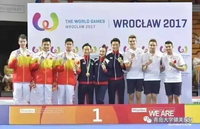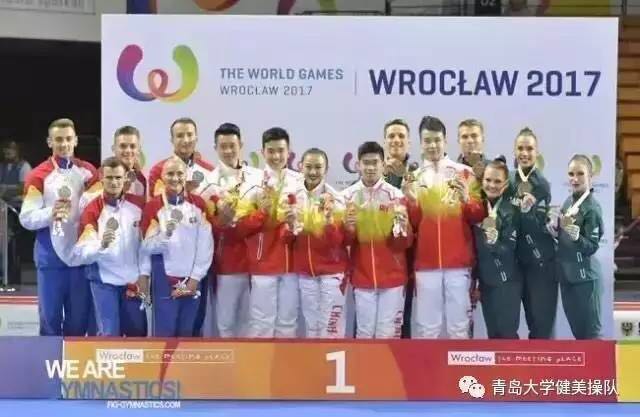 2017年4月于日本东京举行的2017健美操世界杯比赛中,中国健美操队荣获竞技健美操五人操世界冠军。青岛大学-中国健美操高水平后备人才培养基地学生、九游棋牌官网 国际商务系2016级的李琪,身为五人操团队中唯一一名女运动员,经过在国家队两个多月的集训,经受住了赛场上诸多高手的挑战,近乎完美地完成了比赛动作,为国家争得了荣誉。