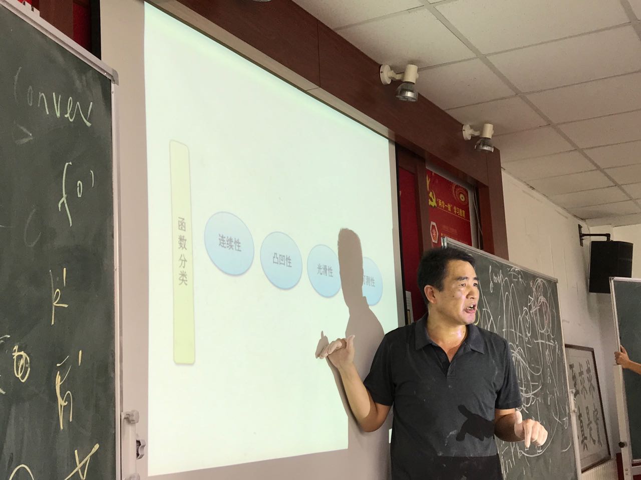 院长胡劲松教授为国际商务系教师就经济学中的优化问题做了专题讲座。讲座从静态优化理论、动态优化理论、静态博弈优化以及动态微分博弈四个方面展开。经济学理论的核心是阐释厂商和消费者这两个行为主体的最优化问题。消费者最优化理论是把消费者的收入作为约束条件,通过求导方法可得到约束条件下的最大值、最小值,这在经济学中称之为无差异曲线与预算线的切点,通过对等式、不等式方程建立的约束条件求解,可以把经济学问题转换为数学问题进行解答,这是数学方法的奥妙所在。