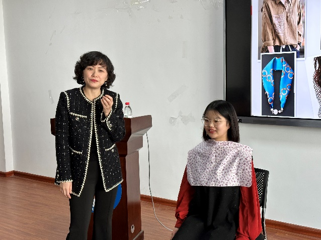 热情高涨的指导环节结束之后,周老师又讲解了如何根据身材体型寻找适合自己的着装,“A型身材宜穿垫肩、宽松上衣;Y型身材适合百褶裙;X型身材适合收腰设计的衣服……”各种各样的穿搭小妙招引得大家赞叹不已。