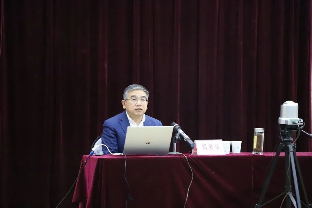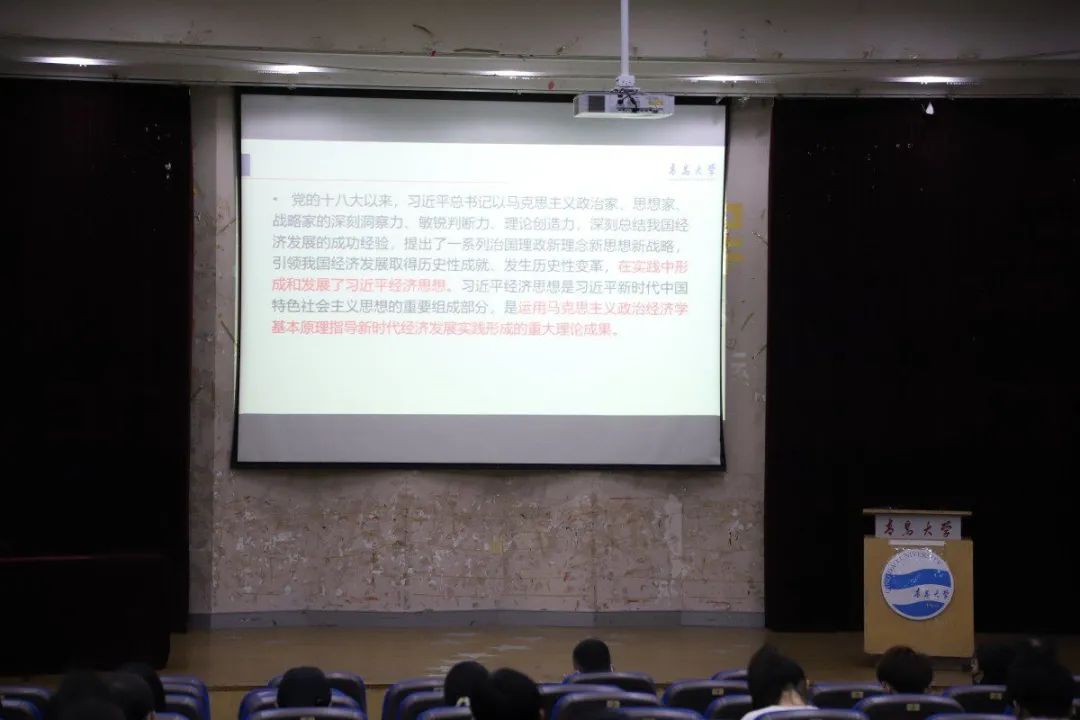 党的二十大精神宣讲会在图文中心四楼报告厅举行。青岛大学党委书记胡金焱教授作了《构建新发展格局,推进经济高质量发展》的报告,九游棋牌官网