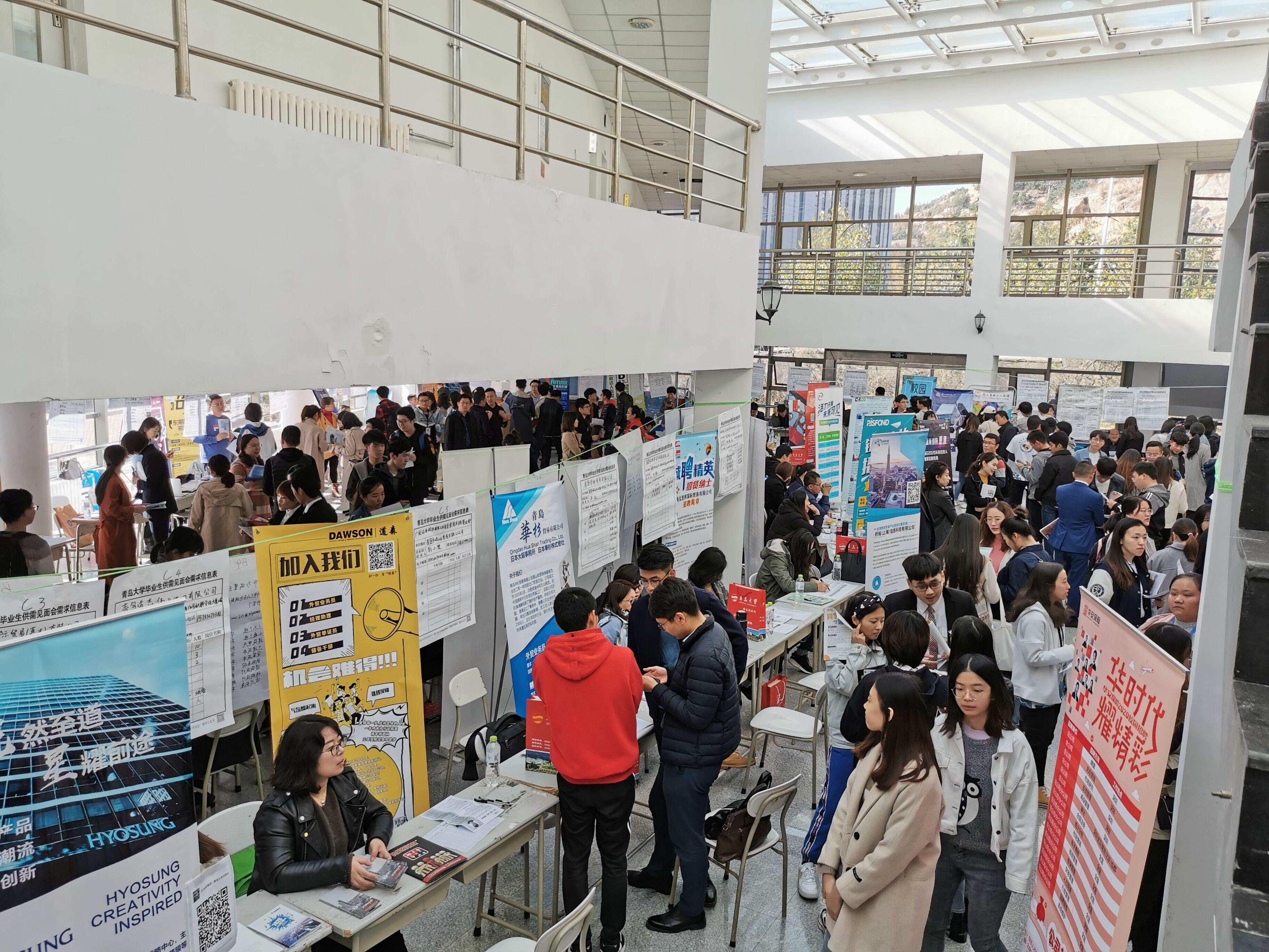 2019年11月8日上午,青岛大学2020届毕业生东校区四院联合秋季人才双选会在青岛大学金家岭校区西院大学生活动中心举行。