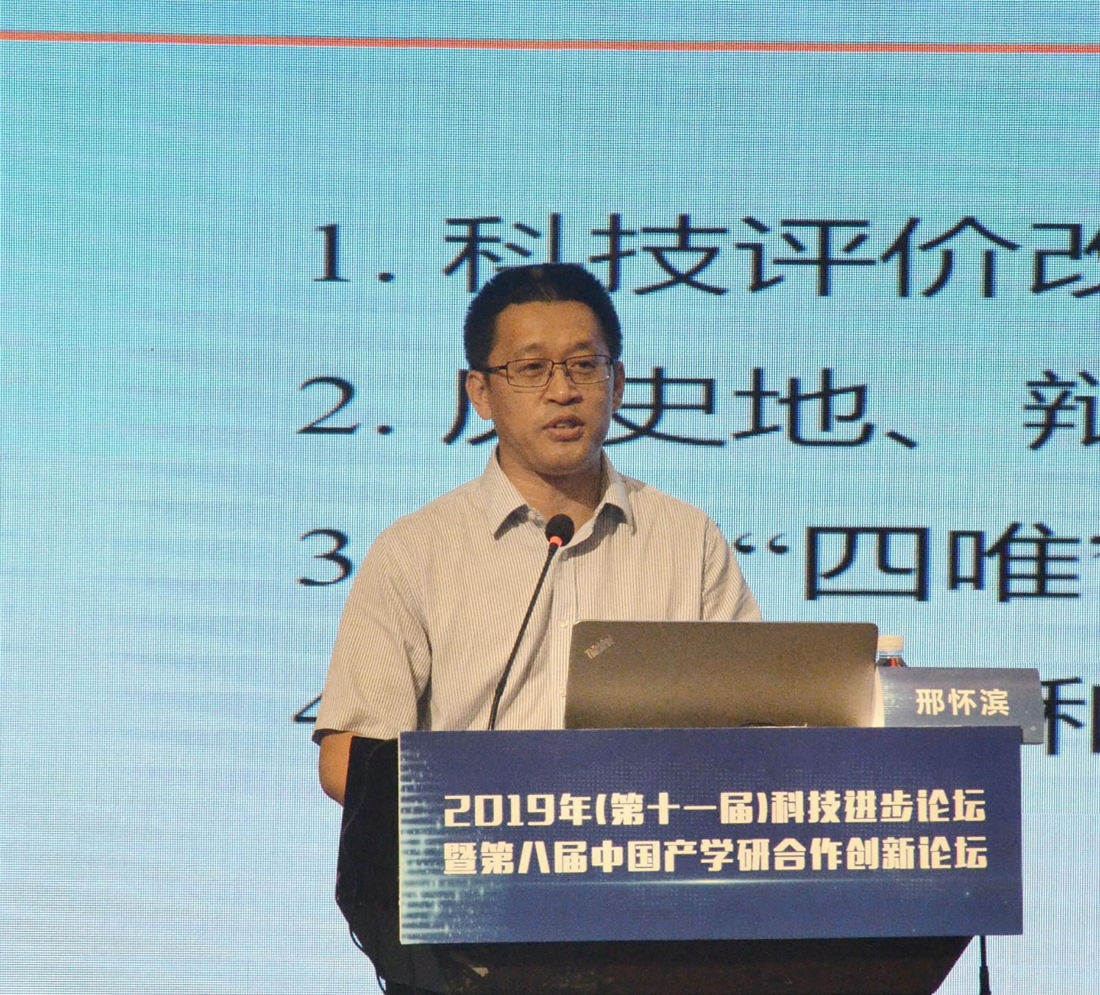 邢怀滨教授带来关于“积极构建科学合理的科技评价体系”报告。首先,邢教授指出“科技评价改革具有扳机效应”,详细的分析我国科技评价体系改革的影响范围广和更具针对化的特点,并对科技评价体系的基本认识做出具体说明,认为科技评价体系是科技创新发展的活水源头。通过历史地、辩证地看待科研量化评价,结合现实情形,既肯定了科研量化评价对我国科研水平提升的积极作用,同时指出现在出现量化代替了目标,轻视了科研的目的是对社会产生贡献,更加重视对论文数量的追求。邢教授提出要在大学里进行引导和激励,渐渐破除大学里科研人员科研量化评价的负面影响。