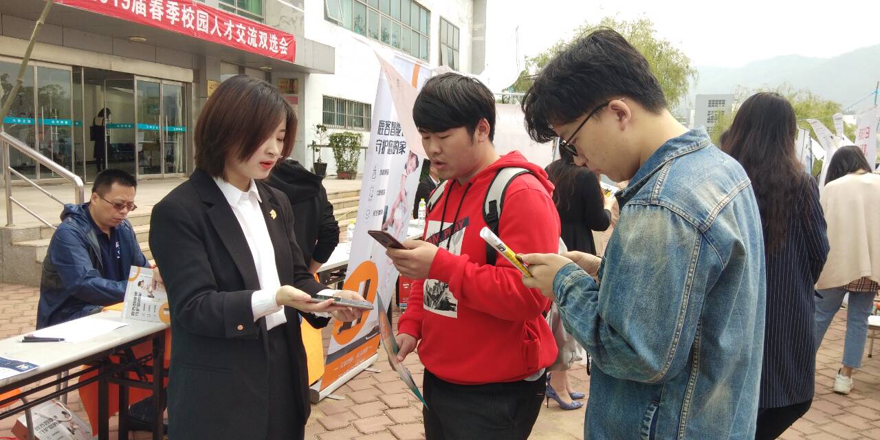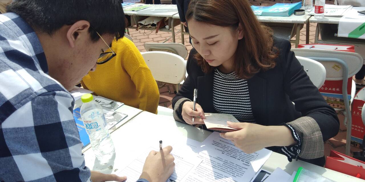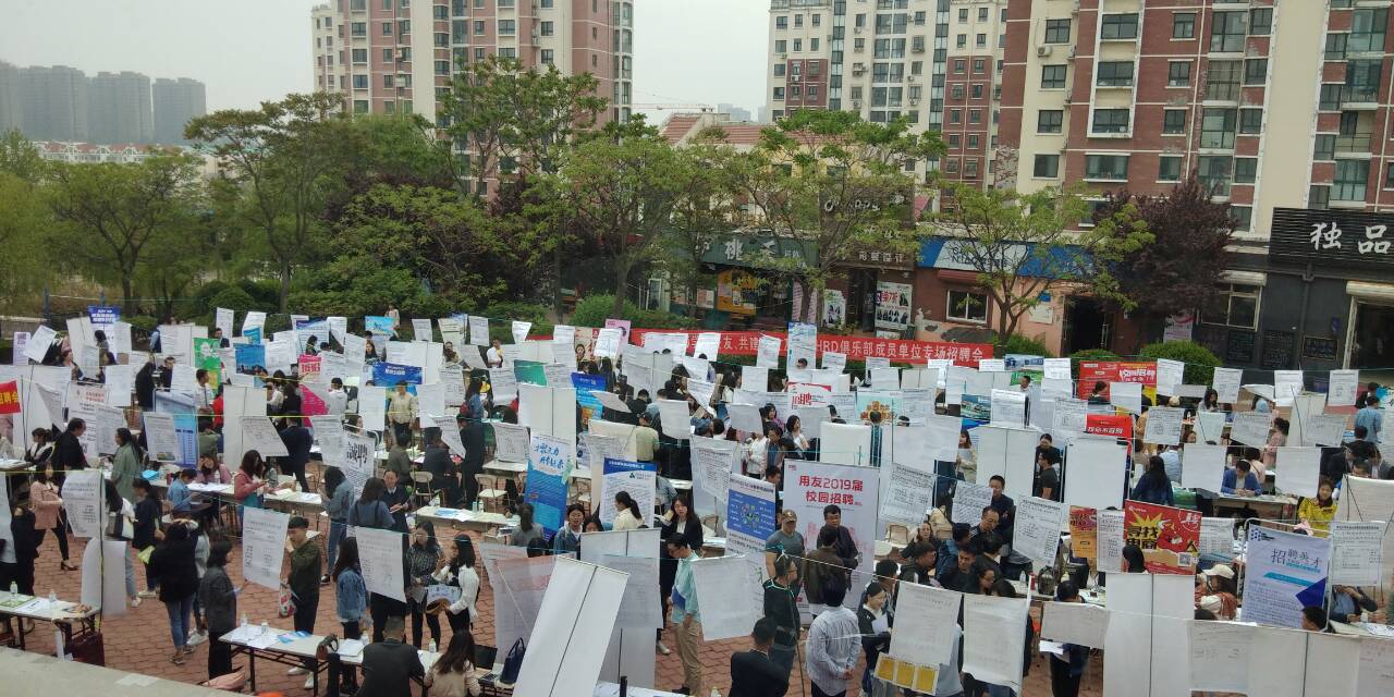 承办的金家岭校区2019届春季校园招聘会举行。包括青岛啤酒集团、海信集团、赛轮集团、即发集团在内的124家知名企业到场,为毕业生提供了包括营销、外贸、会计、管理、人力资源在内的上千个工作岗位。毕业们有备而来,与用人单位认真沟通交流,寻找岗位、投递简历。用人单位招聘代表也与毕业生们积极交流。