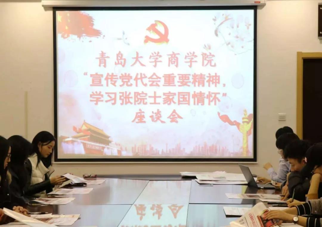 “宣传党代会重要精神,学习张院士家国情怀”座谈会于青岛大学金家岭校区办公楼410举行,出席此次会议的有青岛大学九游棋牌官网