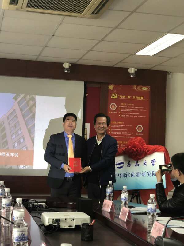 中细软集团孔军民董事长在致辞中介绍了中细软公司的发展历程主营业务及现有成就。中细软公司作为知识产业、服务行业的龙头与青岛大学合作建立创新研究院在山东实现创新驱动与新旧动能转换。