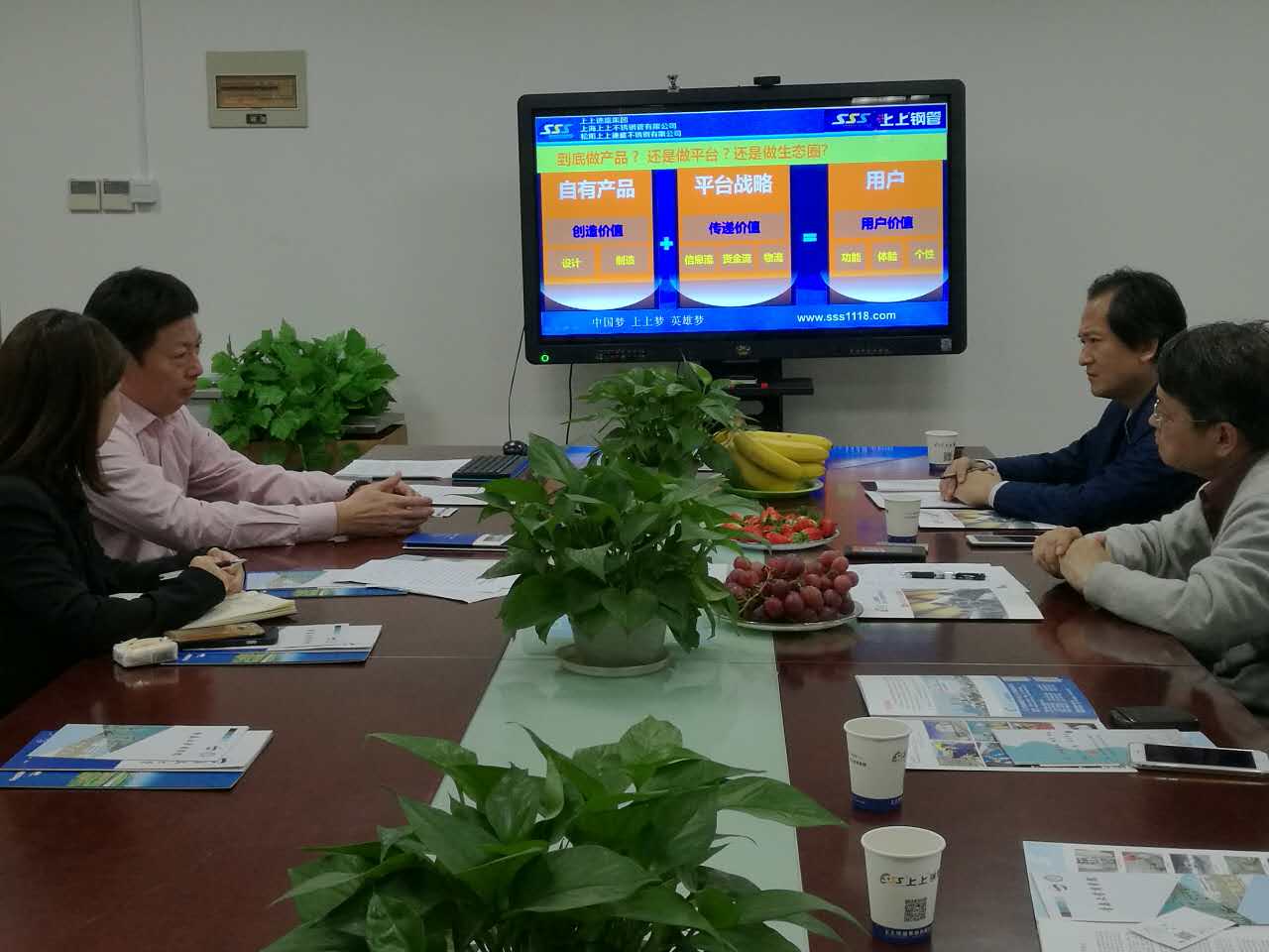 在上上德盛集团,董事长季学文介绍了企业发展目标规划,双方就物联网建设、建设上上集团工九游棋牌官网