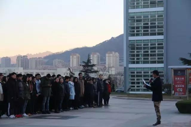 2016年11月28日早6点50,国商系和市场学系2016级全体新生及学生会主席团成员、部长、副部长共同参加了升国旗仪式,学生辅导员王国栋老师参加了本次仪式。
