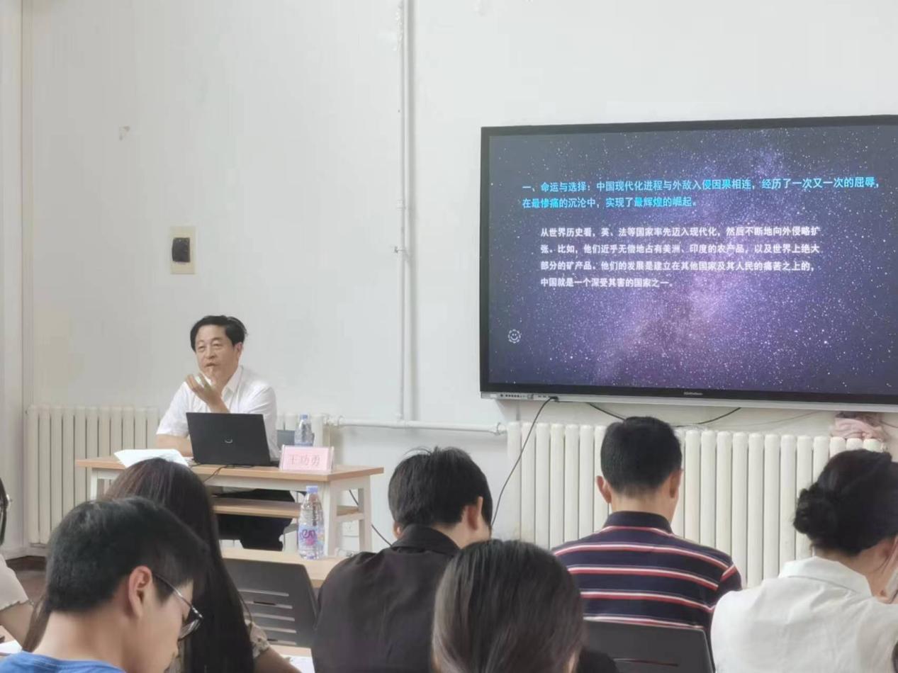 王功勇从“中国式现代化”、“使命”、“担当”的解释切入,从中国式现代化是命运的选择、中国式现代化进程的实践与拓展,中国式现代化无限的展望与期待等方面全面阐释了“中国式现代化”,提出了青年在中国式现代化新征程上的使命与担当。新征程没有旁观者,更没有局外人,“我们每一个人能够把个人事业同中国伟大的现代化进程结合在一起,从身边的一点一滴做起,中国就一定能成为物质繁荣、政治民主、法制健全、社会和谐的现代化国家”。