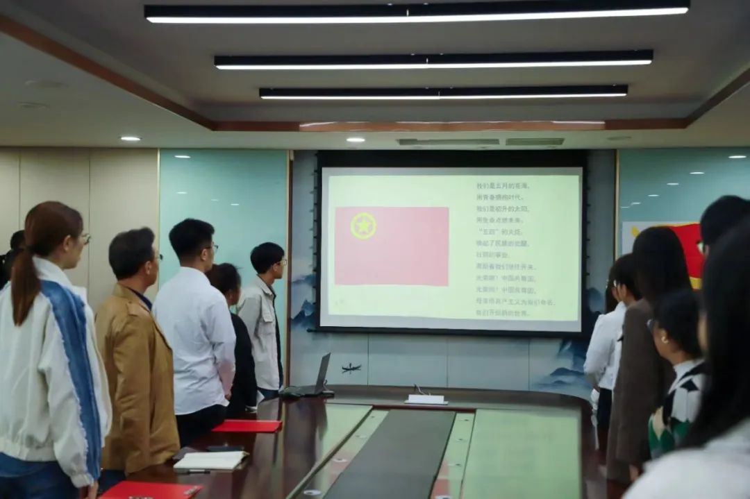 团歌青春激扬,团员们目光坚定、身姿挺拔、声音嘹亮。