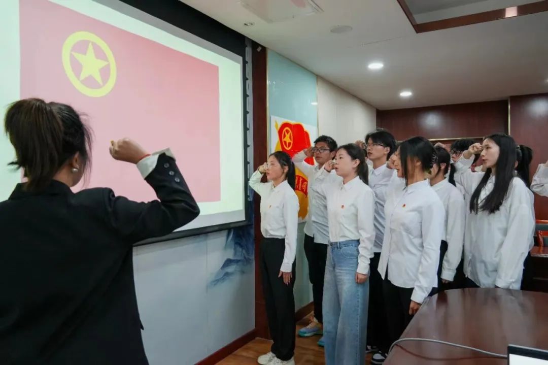 “我志愿加入中国共产主义青年团,坚决拥护中国共产党的领导......”在团员王艺霏同学的带领下,新团员们进行了庄严的宣誓,那铿锵的誓言,终将化为他们坚定的理想信念与实际行动。