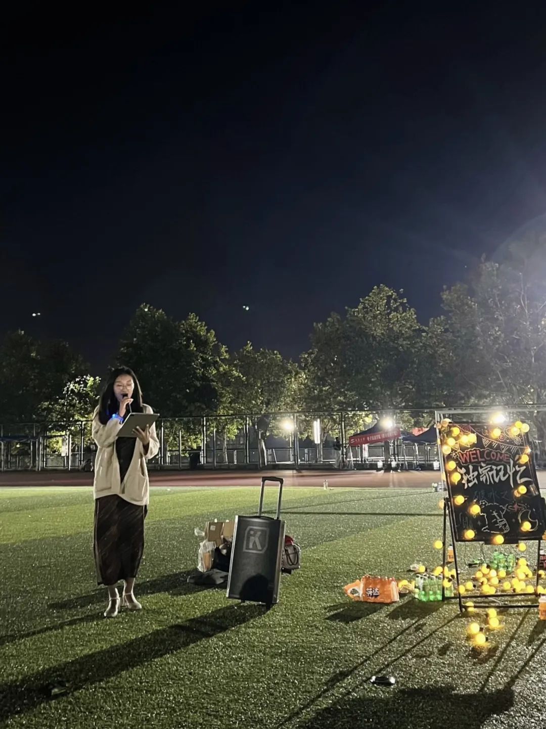 活动期间,研究生会的成员们和23级的学长学姐为大家带来了精心准备的歌曲表演,旋律耳熟能详,引发了全场大合唱,展现了青春的活力与热情。