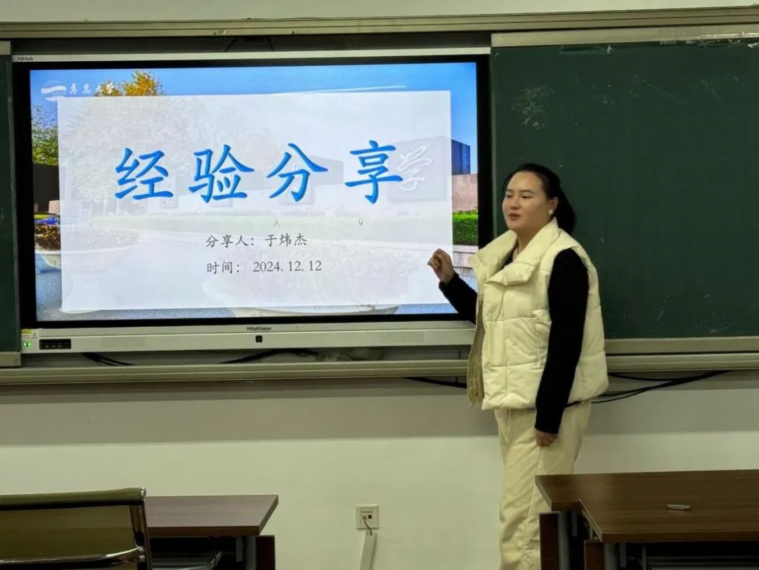 于炜杰同学也是今年的研究生国家奖学金获得者。她为同学们呈上了文献阅读与心态调整的“密钥”。在文献阅读方面,强调广读奠基,筛选靠关键词、作者及期刊“把关”,依序从基础进阶高阶文献,紧扣逻辑,善用浏览、精读、笔记技巧抓要点。在心态调整方面,提醒大家学术路长,要劳逸结合,合理作息,以乐观迎挑战,自信向未来。