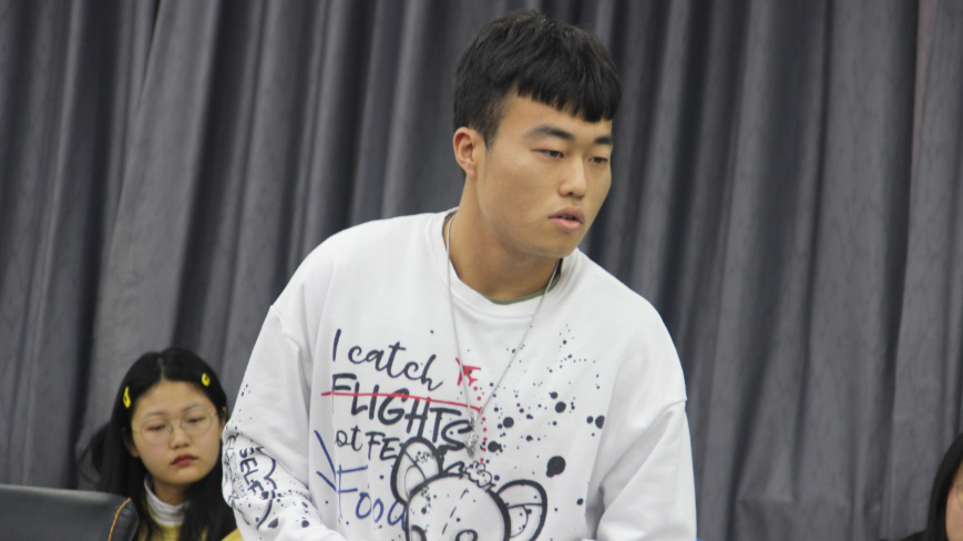 修老师作为Q29的校外班主任,在本学期最后一堂课上做总结发言。