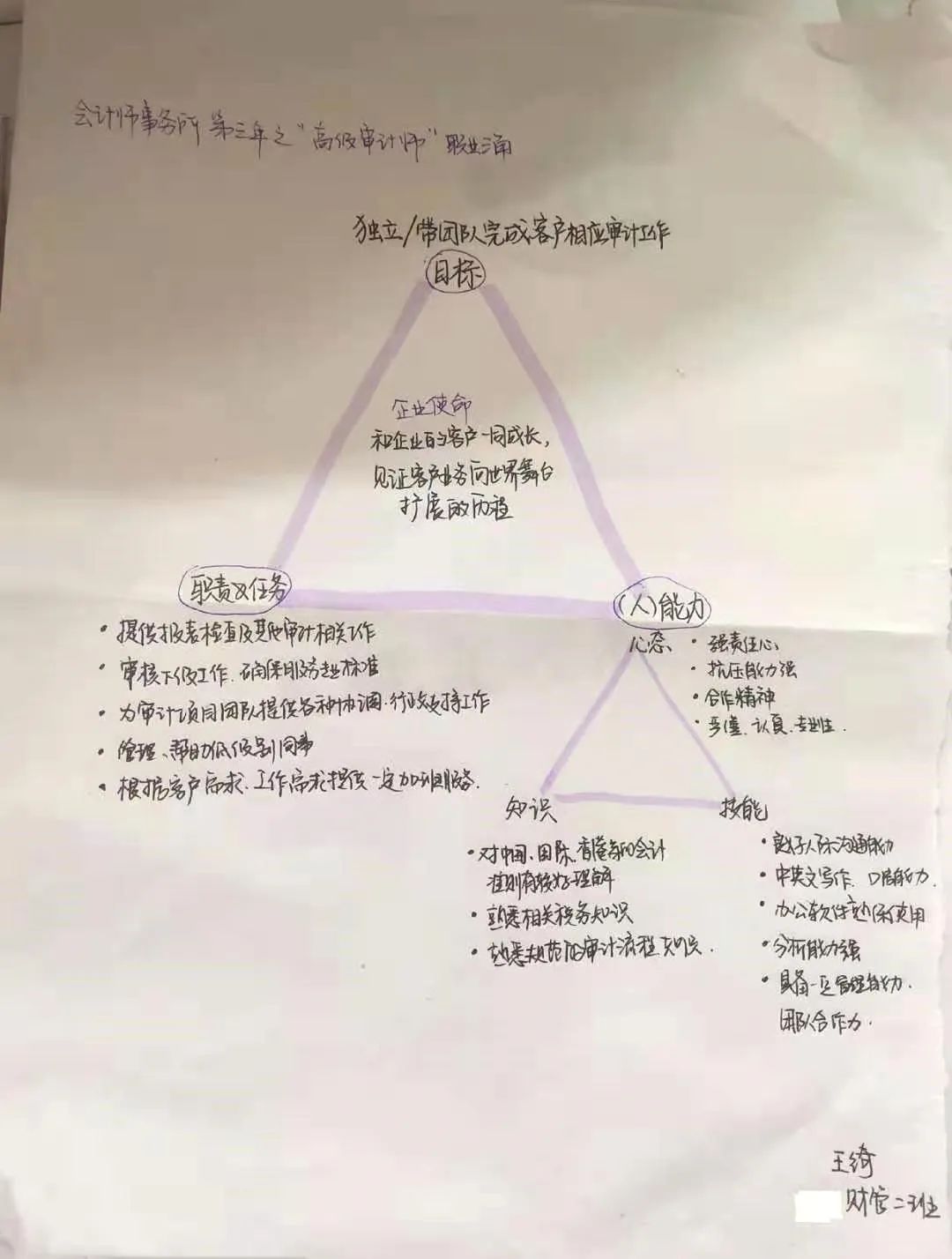 就像这个职业三角模型,不仅是一种实用的分析工具,能让抽象的职业化要求逻辑清晰化、可视化、可感化。更重要的是可以帮助我们更好的去认知未来我们可能的职业,以及在现在去建立差距模型,不断精进。
