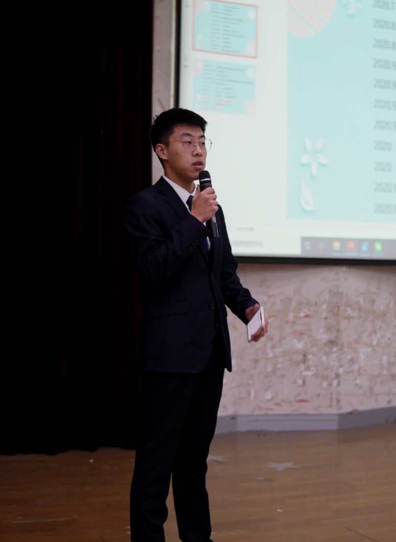 团委书记姜雪峰老师致辞。姜老师对学生会这一年的工作提出了表扬,也教导我们在接下来的日子里继续努力,戒骄戒躁,继续为九游棋牌官网