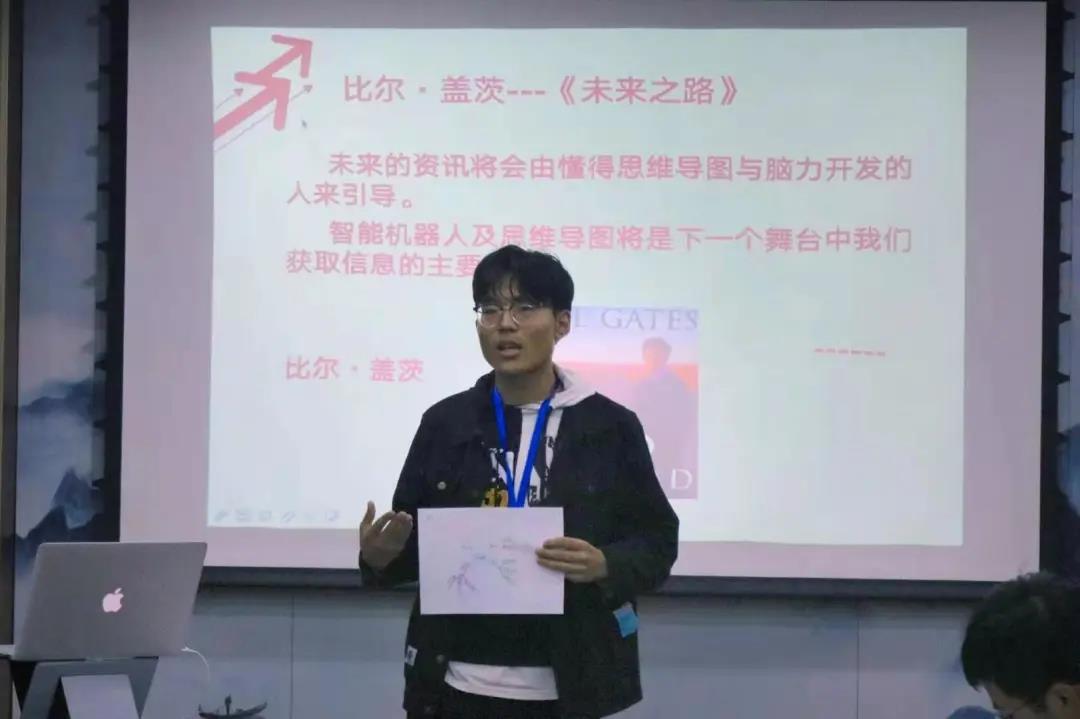 任老师通过手绘自我介绍的思维导图,向同学们讲解了思维导图的基本模式与注意要点。并就同学们的思维导图进行了进一步的点评与指导,让同学们对于思维导图有了一个较为全面的认识。