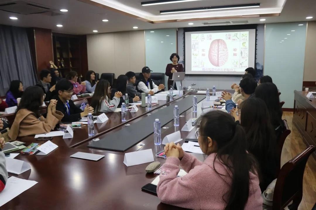 任老师以思维导图的三问:什么是思维导图;思维导图的核心是什么;如何应用思维导图入题,引导同学们进行分组交流讨论,以游戏互动方式激励同学们积极发表观点、看法,在轻松愉悦的氛围中娓娓道来思维导图的要素与应用途径。