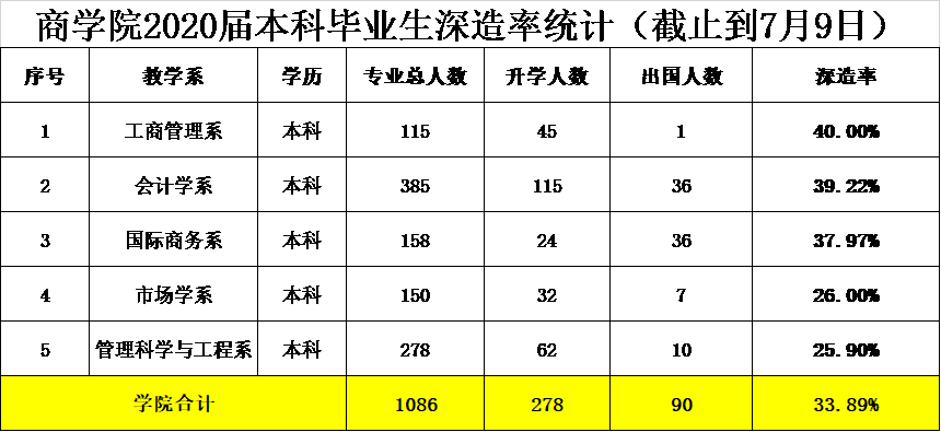 以下为九游棋牌官网 2020级本科毕业生深造率统计及各系学生具体深造情况: