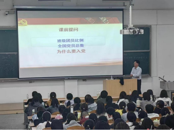 魏强老师围绕“中国共产党为什么能”这一主题开展入党启蒙教育,强调同学们要“学党史,笃信念,紧跟随”。他讲述了习近平总书记对青年大学生的期望与要求,希望同学们“要实学实干,脚踏实地,埋头苦干,孜孜不倦,如饥似渴,在攀登知识高峰中追求卓越,在肩负时代重任时行胜于言,在真刀真枪的实干中成就一番事业。”
