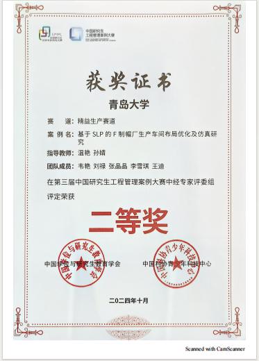 2024年10月27日,第三届中国研究生工程管理案例大赛全国总决赛在北京圆满落幕。我院温艳老师、孙婧老师指导,物流工程与管理研究生韦艳、张晶晶等同学合作撰写的案例《基于SLP的F制帽厂生产车间布局优化及仿真研究》成功晋级全国总决赛,并荣获全国二等奖。