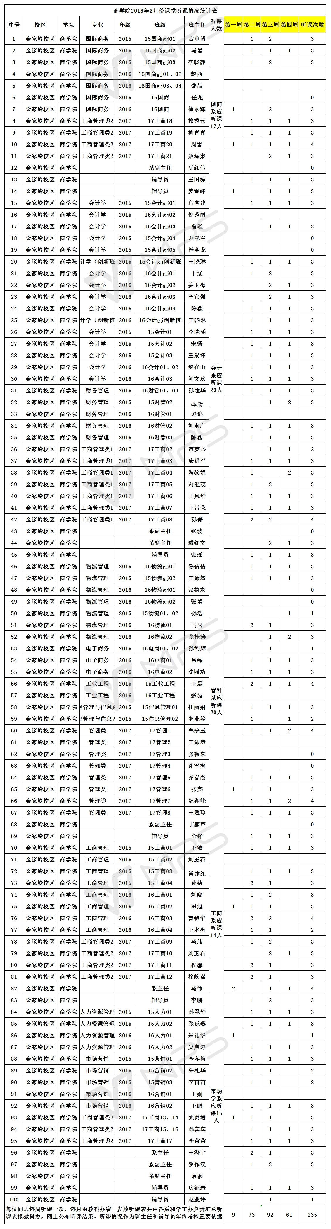 九游棋牌官网 2018年3月份课堂听课情况统计表