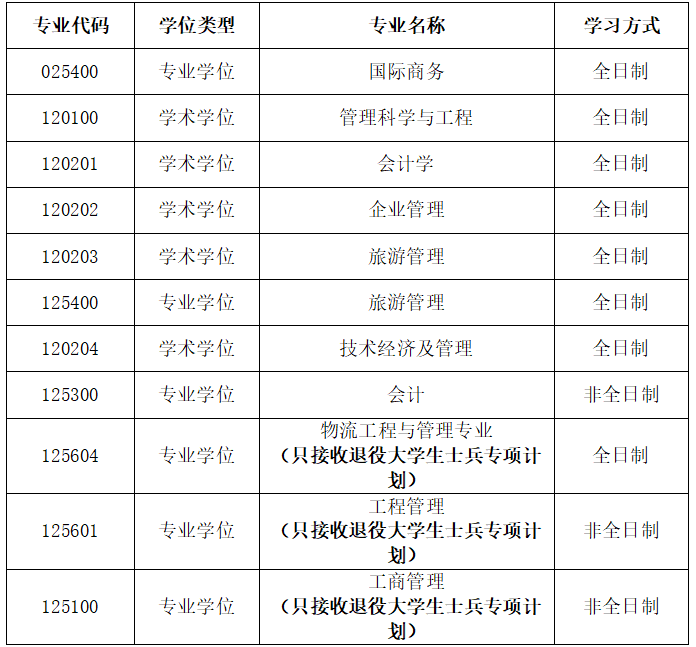 6.第一志愿报考工商管理、公共管理、旅游管理、工程管理、图书情报、审计、会计专业学位硕士的考生,在满足第一志愿报考专业和调入专业国家线要求、调入专业报考条件(含工作年限)的基础上,可申请互相调剂,但不得调入其他专业;其他专业考生也不得调入以上相关专业。
