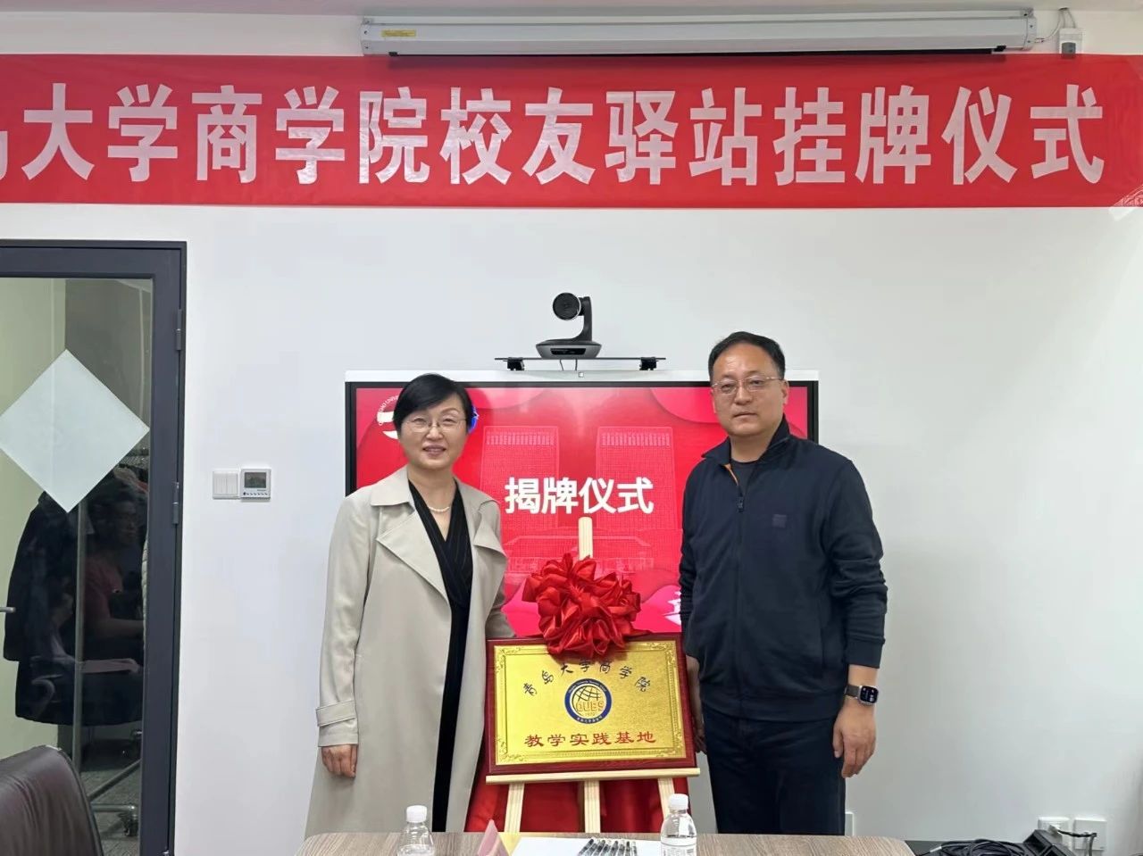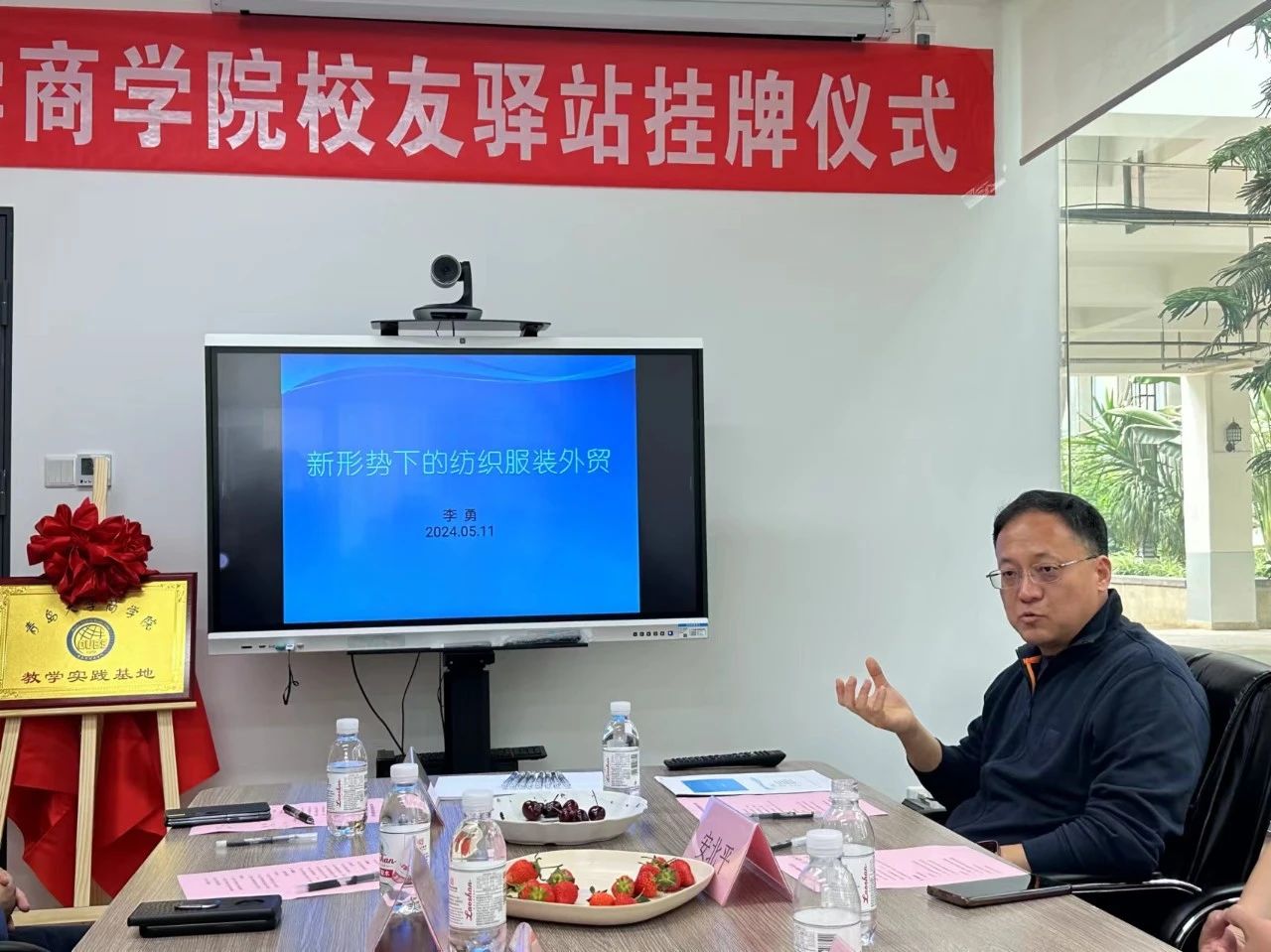 与青岛百安贸服装有限公司校友驿站揭牌仪式暨教学基地挂牌仪式在青岛百安贸服装有限公司举行。青岛金沃物流有限公司总经理(九游棋牌官网