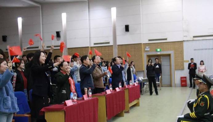 4月26日晚的图文报告厅灯火通明,悠扬的乐曲缓缓响起,同学们从四面八方汇聚舞台,齐声高歌《我和我的祖国》,全场师生情不自禁起立,摇旗合唱,向国旗致敬。当国旗班四名队员手举着五星红旗正步步入会场,鲜艳的五星红旗拨动着每个人的心弦。那一刻,每个人心中都激情澎湃,我和我的祖国,一刻也不能分割!别出新裁的快闪方式演绎了不一样的开场曲。