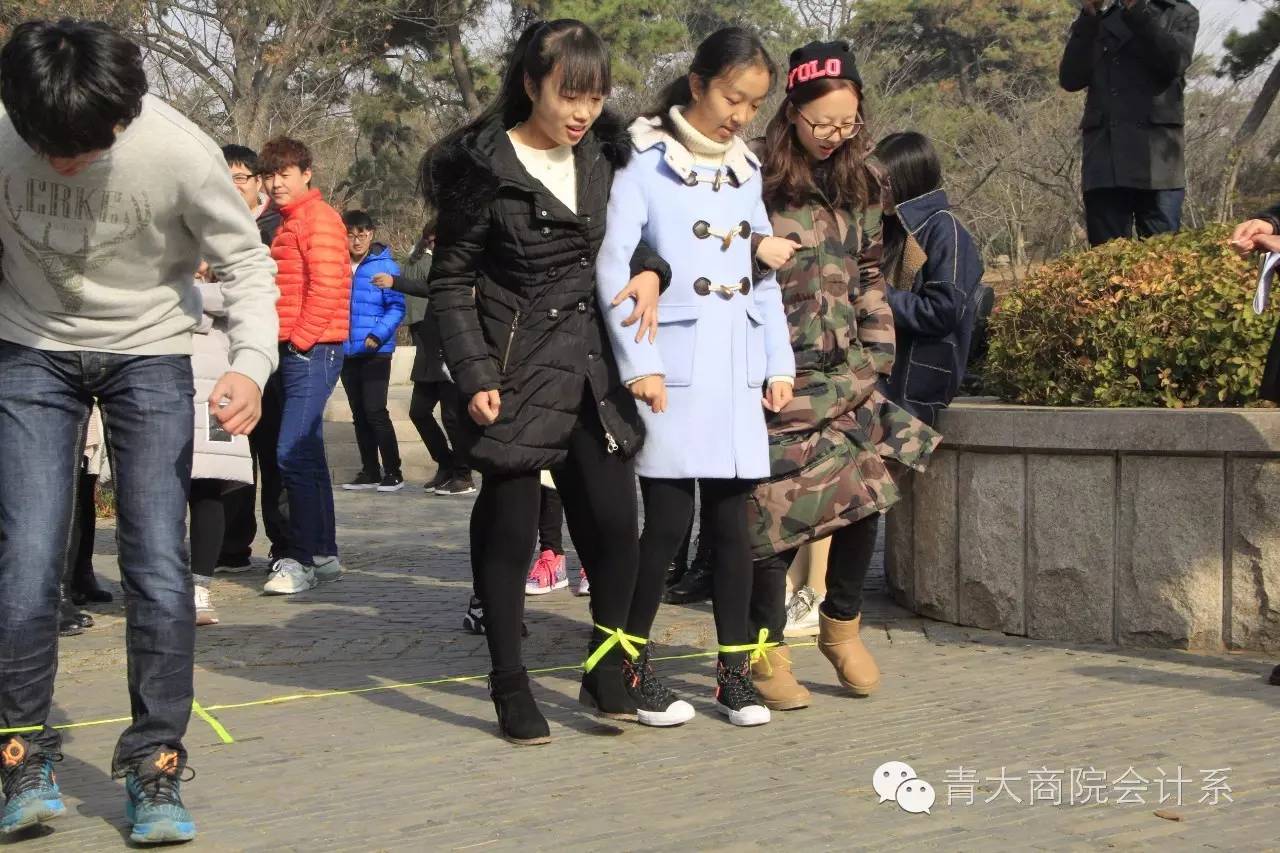 第二个环节——绑腿跑!每组分别寻找一名同龄路人参与比赛,并以车轮战的形式赢得胜利。然而比赛过程中的参与姿势花样百出,还有不甘寂寞的人员自行上阵,使得场面更加精彩起来。