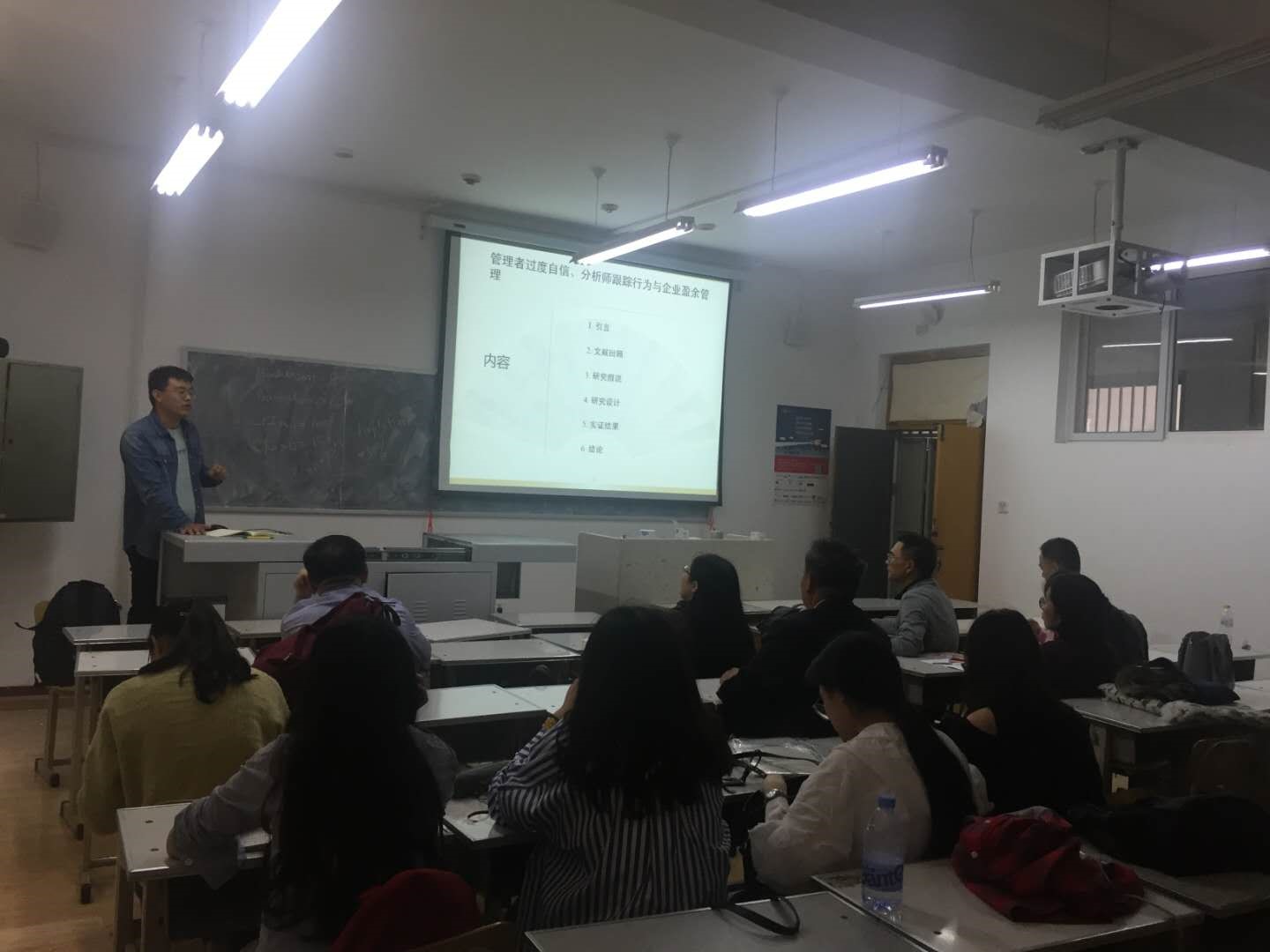 5月9日下午14:00,由高宇老师主讲的“关于’管理者过度自信、分析师跟踪行为与企业盈余管理’论文研讨”讲座在青岛大学东校区东院四号教学楼312如期展开。参加讲座的有范英杰、康进军、鲍在山、汪健峰、钟子亮、刘文欢、王崇锋、韩倩倩老师等会计学系老师们和会计学研一和研二的同学们。