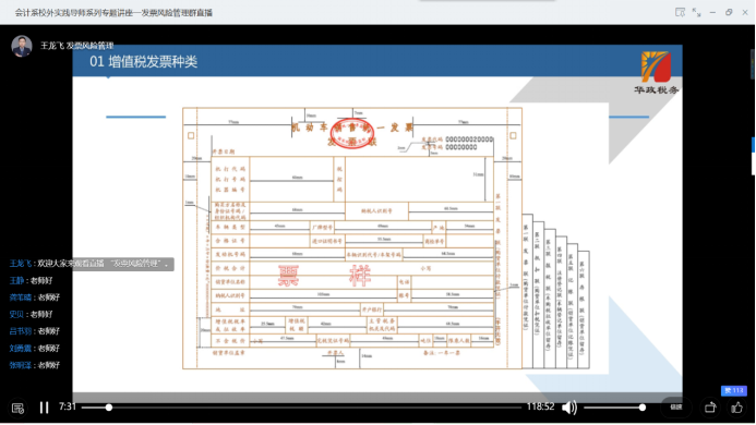 王老师从增值税发票种类、增值税发票开具基本要求、发票备注栏注意事项、发票认证管理四方面对发票开具不合规风险问题进行了深入浅出地讲解。