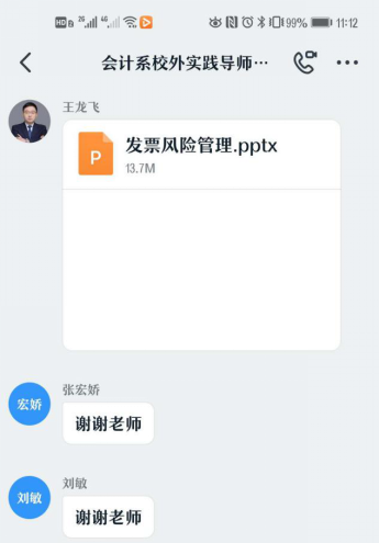 通过本次讲座,参加讲座的同学纷纷表示讲座干货满满,对发票风险管理有了较为深入的了解,明确了发票风险管理的知识点,同时对异常扣除凭证风险、虚增增值税发票风险等问题有了更为深刻的认识。王龙飞校外实践导师为同学们提供了宝贵的PPT学习资料,有助于同学们将税务学习纳入自己的职业规划选择,希望同学们在今后的学习中更上一层楼。