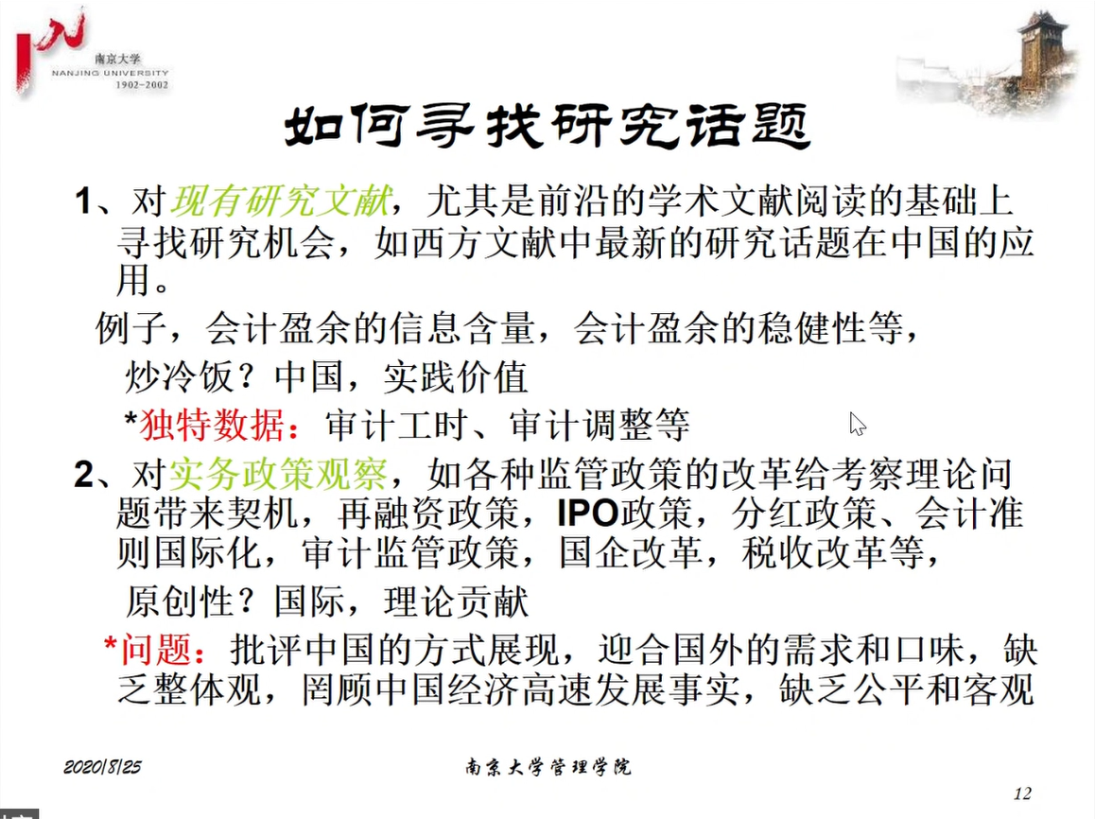 2020年8月25日上午9点到12点,会计系老师、硕士研究生和本科生参加以“如何开展学术研究”为主题的高端讲座,主讲人为南京大学王跃堂教授。